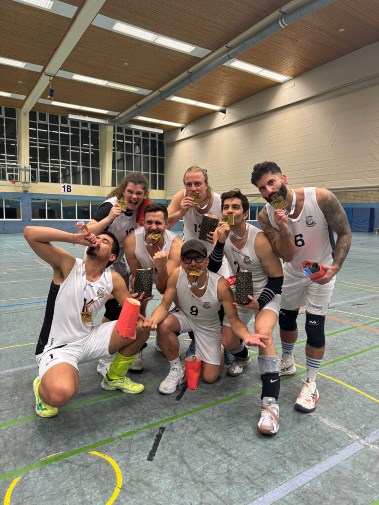 Mit nur einer einzigen Niederlage in der Gruppenphase gegen unsere Erzfeindefreunde (😉) den Red Owls vom SC Aufruhr, standen wir im Halbfinale, wo wir Lîla Dî mit 19:12 und 18:12 souverän schlugen. Nach diesem unerwarteten Erfolg waren wir so motiviert, dass wir im großen Finale gegen die Breisgau (b)Engel nicht mehr aufzuhalten waren, wir siegten mit 22:14 und 17:14 und das Weihnachtswunder war perfekt.